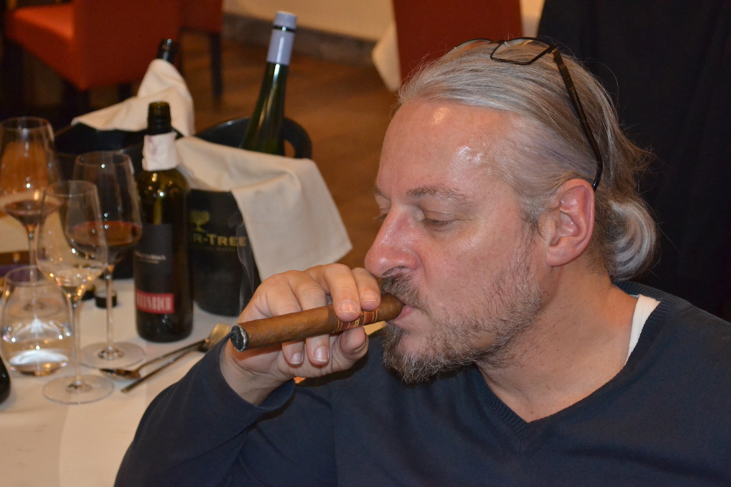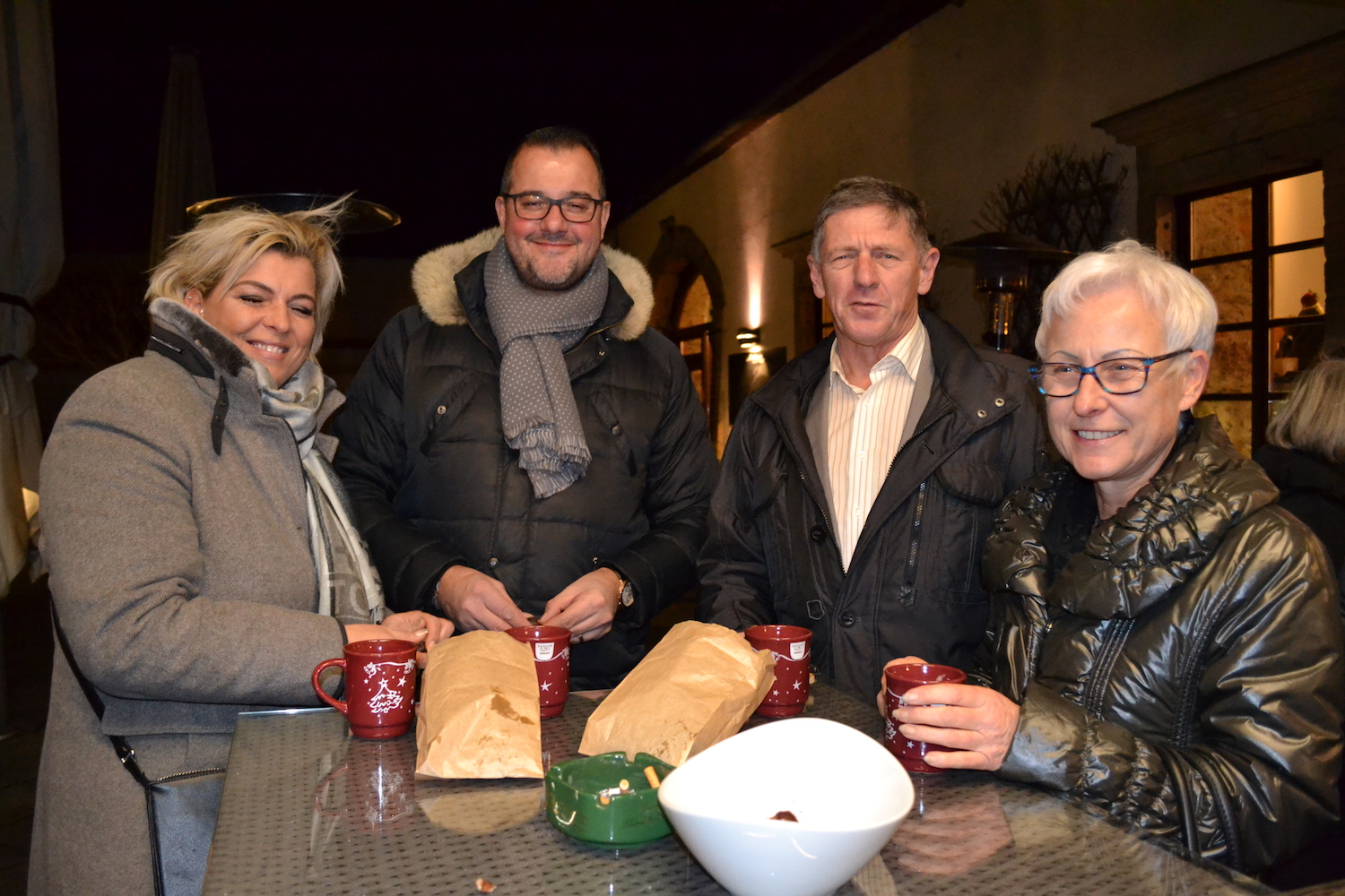 Zu Beginn begrüßten und die beiden Chefs, der Koch Walter Jäger, der vielen noch aus seiner Zeit in der Verdi Diele, dem besten Speiselokal von Linz bekannt war und sein Kollege und EX Zigarrenclubmitglied Andi Windbichler im wunderschönen Innerhof des Gebäudes mit Punsch Glühwein, Glühmost, Raclettebrote und Maroni. Dazu gab es eine kleine Avo Zigarre zu verkosten