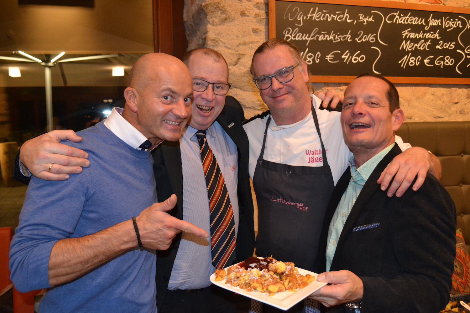 Höhepunkt. Alle, aber wirklich alle, lobten sowohl die Tafelspitzbouillon mit dreierlei Einlagen und die rote Rübenschaumsuppe mit Kren, die darauffolgenden geschmorten Ochsenbackerl mit Taleggiopolenta, Barologlace und Gemüse sowie die bei 70 Grad zubereitete asiatische Lachsforelle mit Antipasti-Gnocci mit Pesto. Perfekter Abschluss war ein frisch karamellisierter Kaiserschmarrn mit Zwetschkenröster.