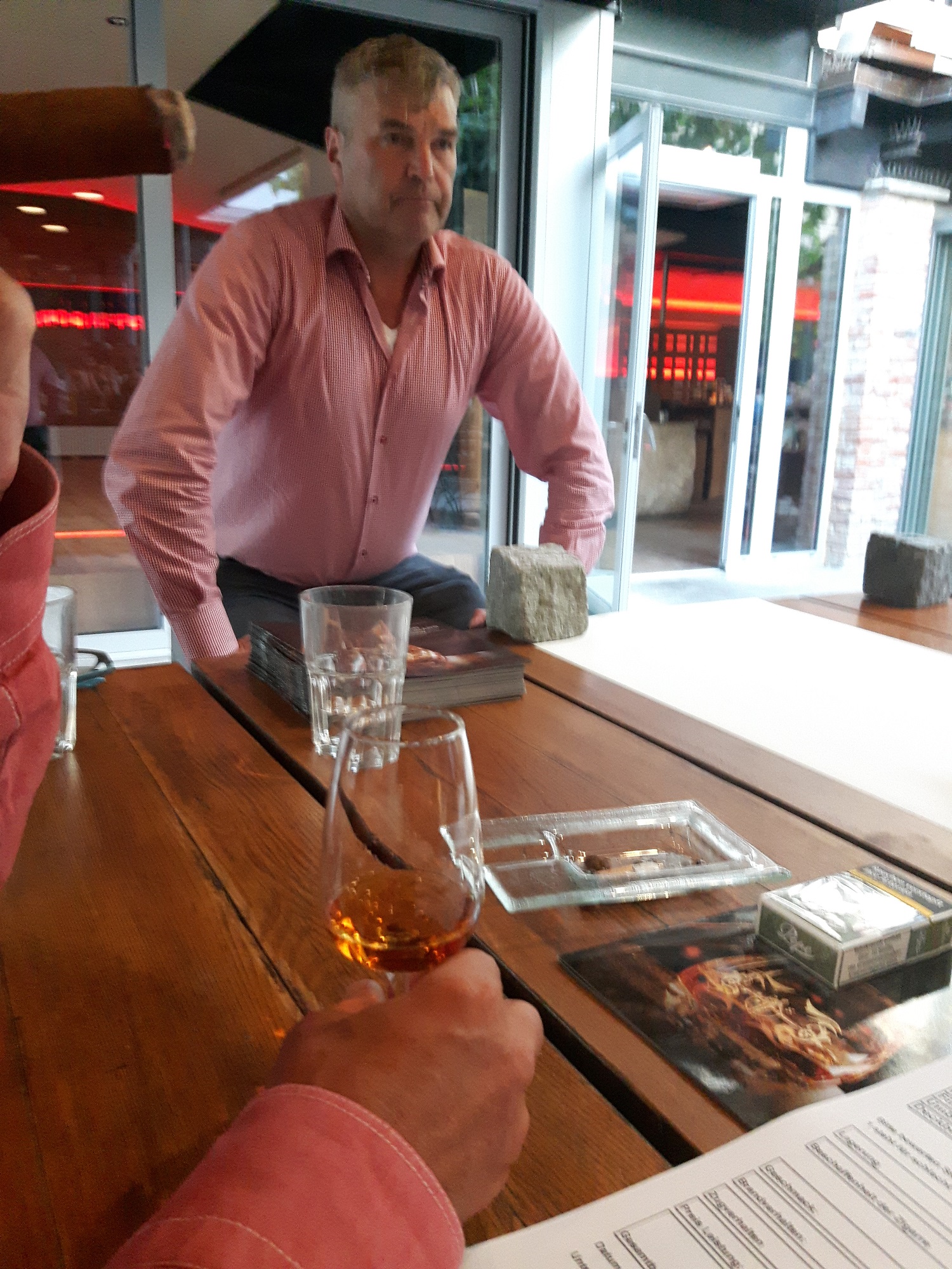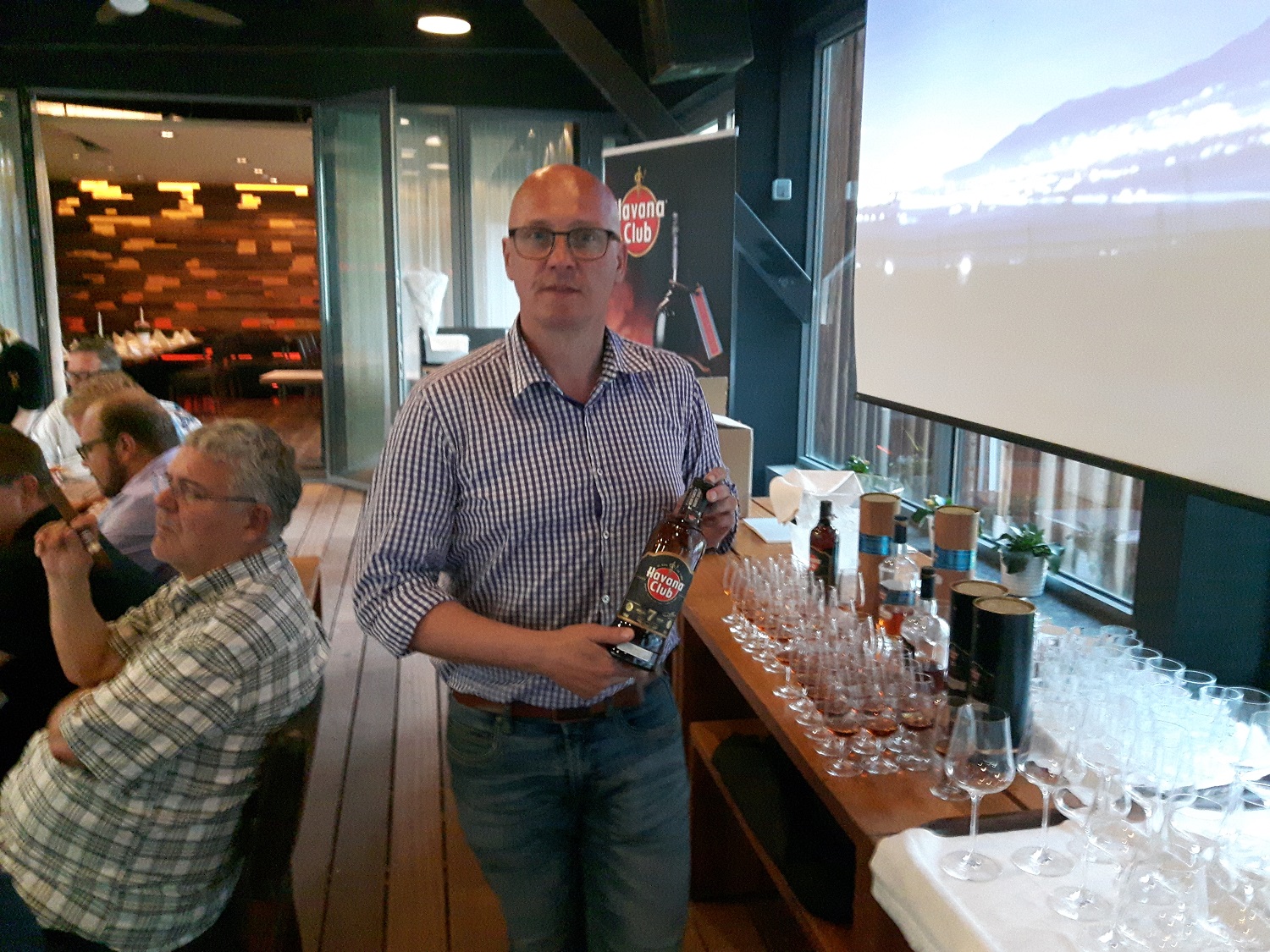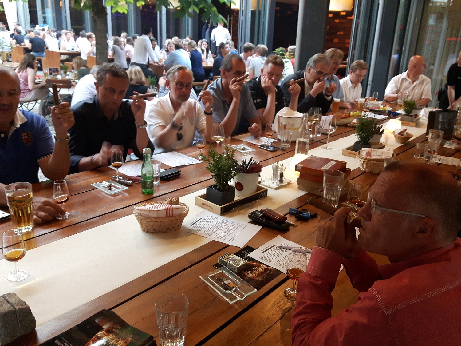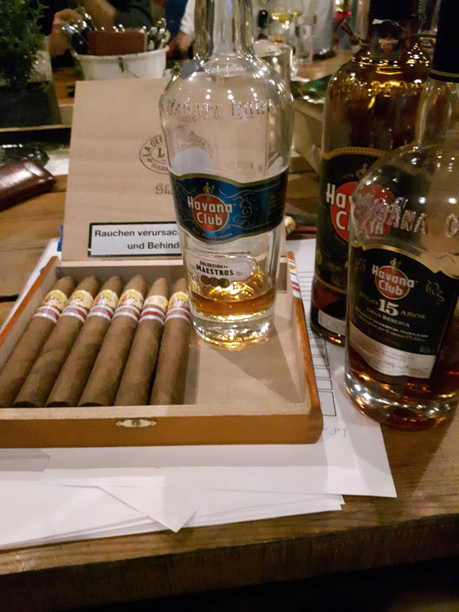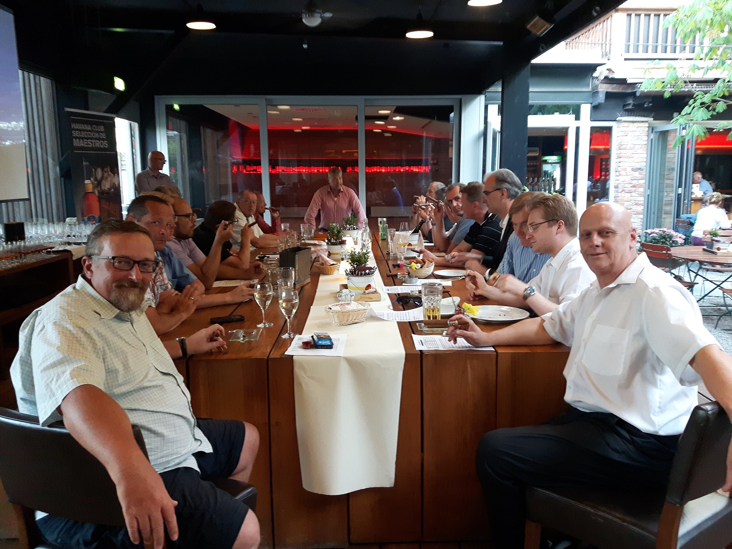 Gert Weismman als Vortragender und Mike Schmitt von der Firma Pernod Ricard luden uns am diesem Abend auf der Bühne im Gastgarten des Josef bei wunderbarem Wetter zur Rumverkostung von drei Havanna Club Produkten. (7 jährig, Selection Maestos, 15 jährig). Gert erklärte sehr interessant die Entstehung des Getränks, deren Produktion sowie die Reifung, Lagerung und die Qualitätsmerkmale. Speziell die Selection Maestos, sowie der 15 jährige, dieser speziell mit Fortdauer des Zigarrenabbrands, fanden großen Anklang.