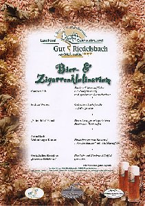 Immer auf der Suche, unseren Mitglieder etwas Neues zu bieten, ließ sich Organisationreferent Franz Holzinger diesmal ein Zigarren- und Bierkulinarium einfallen. Veranstaltungssort war das wunderbare Gut Riedelsbach der Familie Sitter (www.gut-riedelsbach.de). Bernhard Sitter, Deutschlands erster Bier Sommelier braut nicht nur selber. Er hat sein Anwesen im Deutsch-, tschechisch-, östereichischen Dreiländereck komplett auf das Hopfen- und Malzgetränk eingestellt. Nicht nur dass Sie hier neben einem Biermuseum so ziemlich die umfangreichste Sammlung aller Biere der Welt finden, so zieht sich diese Linie über das Wellnessangebot mit Bierbottichbad bis hin zum Frühstück, wo neben dem Bierschwarzbrot auch verschiedenen Bier-Wurstsorten angeboten werden.