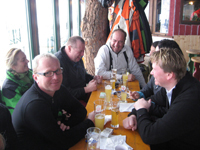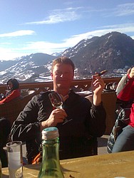 Jeder der Teilnehmer war sich klar, daß wir heuer kulinarisch mit diesem Menü am Freitag abend wohl den Höhepunkt unserer letztjährigen Reisen hierher erlebt haben. Auch der Schitag am Samstag, mit Erwin und seinem Sohn Lukas, wird uns lange in Erinnerung bleiben. Die Tatsache, dass sich entgegen allen Versprechungen von Erwin die Sonne hier immer nur kurzzeitig zeigte, war wohl nur Anlass für einige "Häkeleien" unseres Clubkassier Alexander Bachmann. So, wie wir uns am Spätnachmittag auf der Xandlalm und anschließend in Erwins Schirmbar in Hinterglemm "von innen" wärmten, konnte uns gar nicht kalt werden.