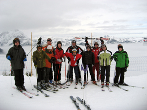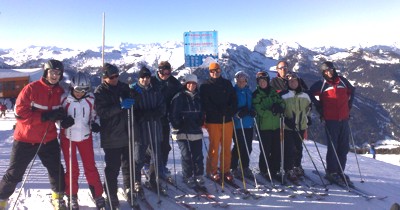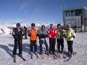 Das Schigebiet selbst, in dem viele von uns das erste Mal waren, fand großen Anklang. Speziell die wirklich vielen schwarzen Pisten hatten es uns angetan. Und auch die Dame, die eigentlich weniger dem Schisport fröhnt, stürzte sich wagemutig mit Unterstützung aller anderen in die Tiefen und fand immer mehr Gefallen daran. Ein einziger Sturz, der ihr kurzzeitig den Mut nahm, wurde abendlich mit einer Medaille vergoldet.