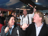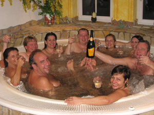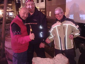 Erwähnenswert auch die Schibar von Kerim, mitten im Ort, direkt vor unserem Hotel, am Schlossplatz. www.pavilion.caesar.at Ein Mann, der seinen Gästen die Wünsche von den Augen ablesen kann und der sich bei guten Gästen äußerst spendabel zeigt. Beim "Nageln" bewiesen Herwig Kern, Franz Lugmaier und Klaus Fischer mehrmals ihr handdwerkliches Geschick und freuten sich bei jeder ausgespielten Einladung, dass Franz Holzinger und Claus Gruber diesmal nicht so oft trafen.