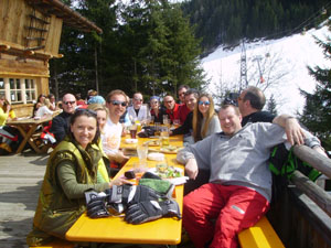 Während einige sonntags noch die wunderpaar präparierten Pisten bei strahlendem Sonnenschein zum Schilauf nutzen, fand sich der Großteil der Mitglieder am späten Vormittag auf der Gerstreitalm ein um im Liegestuhl den Saisonausklang zu feiern. Die Hütte war an diesen Tag fest in Linzer Hand, denn neben unseren Klubmitgliedern wurden viele weitere bekannte Gesichter, darunter Bergdiele Wirt Willi Staybl, Helga und Eckhard Nothhaft, oder der ehemalige Szenewirt Harry Binder gesichtet.